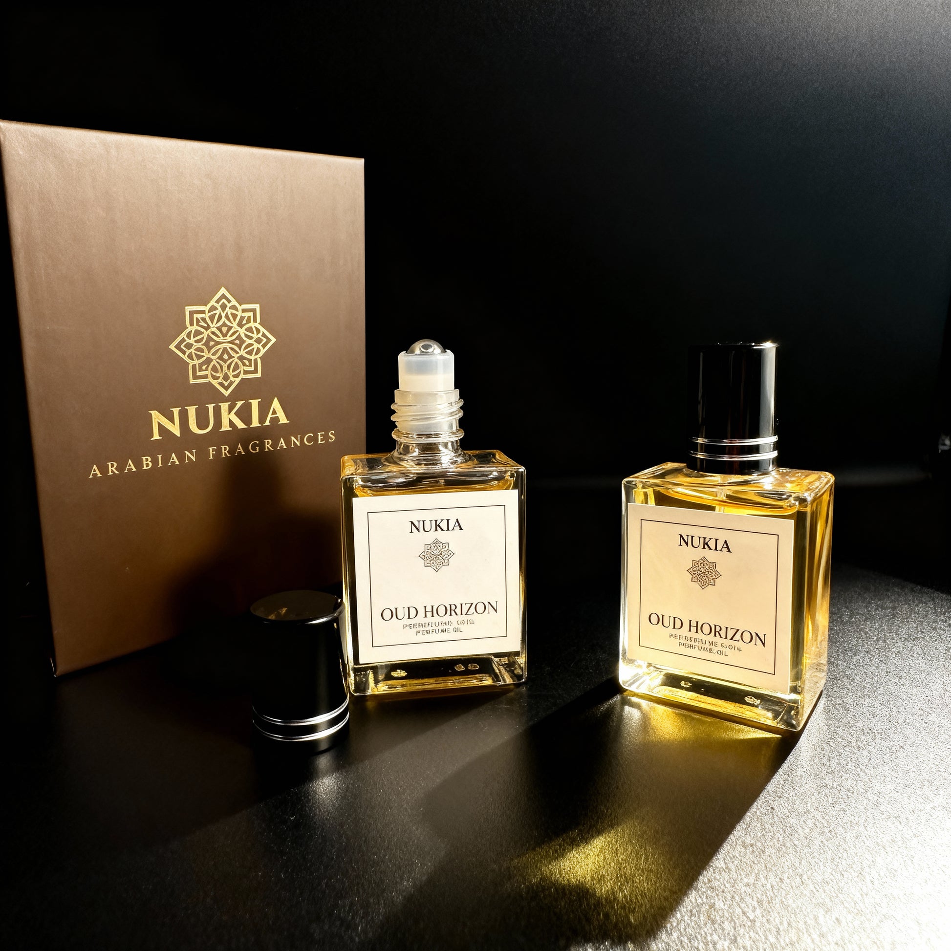 Oud Horizon opens with a bright touch of citrus before revealing a heart of smooth, smoky leather — bold, refined, and effortlessly confident.